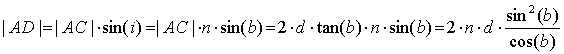 Da |AB| = |BC| fås følgende udtryk for den optiske vejforskel: