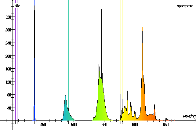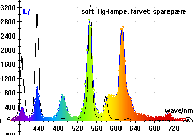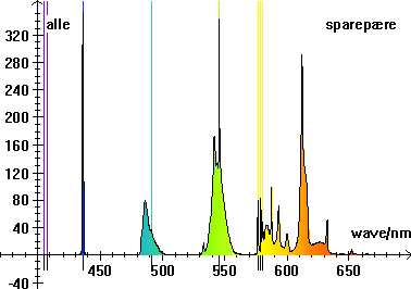 | Spektrum af sparepære. Se større billede nederst på