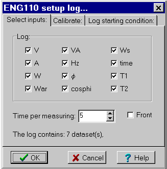 Here you can choose the time per measurement both for online and offline logging, as well as number of measurings at online logging. The first measuring is made, when the first time interval has passed. Not when log is started!