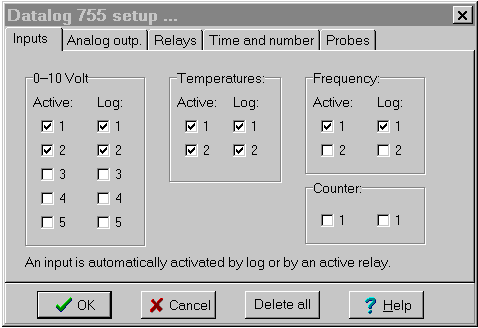 When you press OK, Datalyse activates all outputs to be used for logging or by a relay automatically.