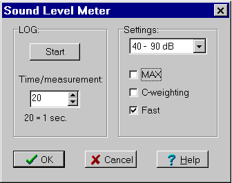 Sound Level Meter can measure sound from 30 dB to 130 dB. It has a serial interface and an analog output. If you use the analog output, you can use the device as a microphone. I.e. you can use it for Fourier analysis, e.g. with the PCskop-card. And as a microphone it is capable of registering frequencies and the hearing limit, which is an advantage when experimenting with the speed of sound in air using an oscilloscope.
